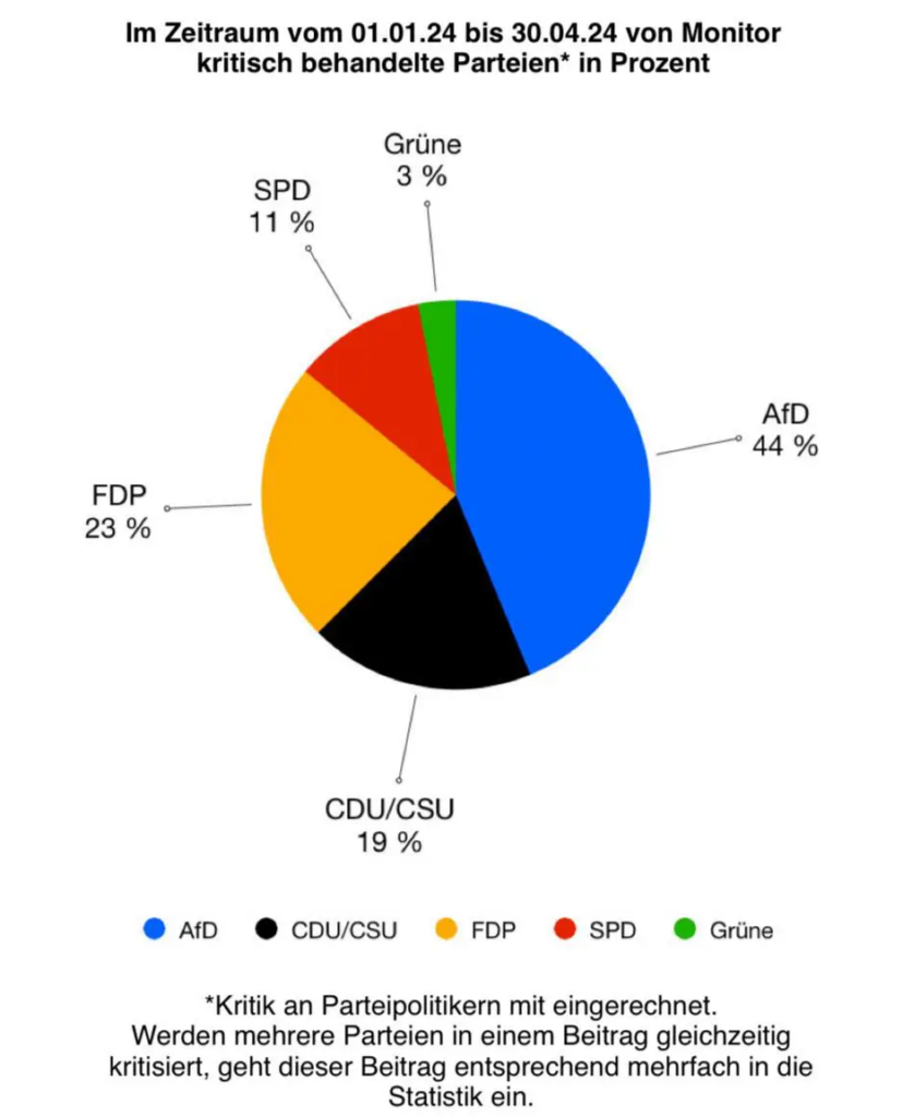 Eine Analyse von Apollo News zu in Beiträgen vom Monitor (WDR) kritisch behandelten Parteien zeigt: